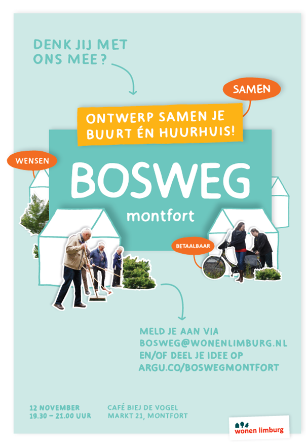 Aan de Bosweg in Montfort zijn 20 huurhuizen gebouwd. De toekomstige bewoners hebben hierin een belangrijke stem. Zij mogen meedenken over de stedenbouwkundige opzet en hoe hun huizen er uit komen te zien. Daarnaast kunnen ze de grootte en de mate van luxe bepalen. Ze kunnen kiezen voor een eenvoudiger, dus goedkoper huis of voor een luxere woning met een hogere huur. Een deel van de huizen aan DE Bosweg is ook nog eens tijdelijke bouw. Als de woonwensen in de toekomst veranderen kunnen de deze woningen ergens anders weer worden opgebouwd.