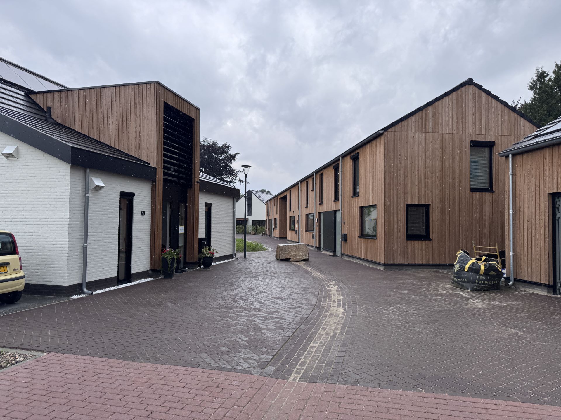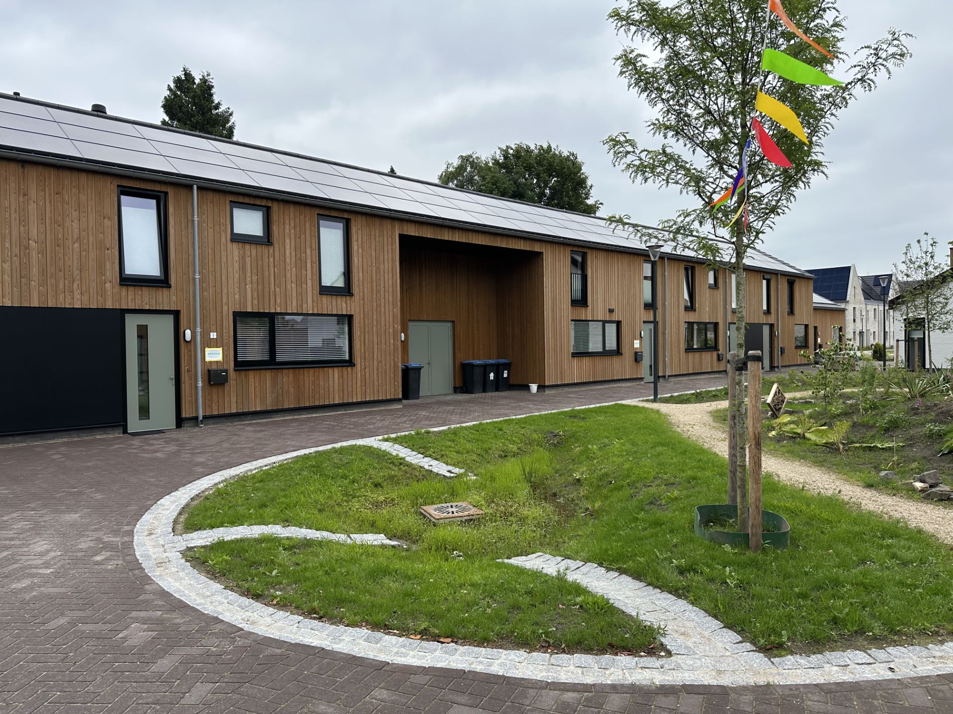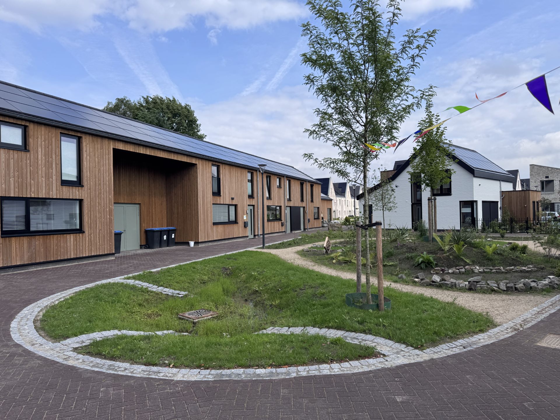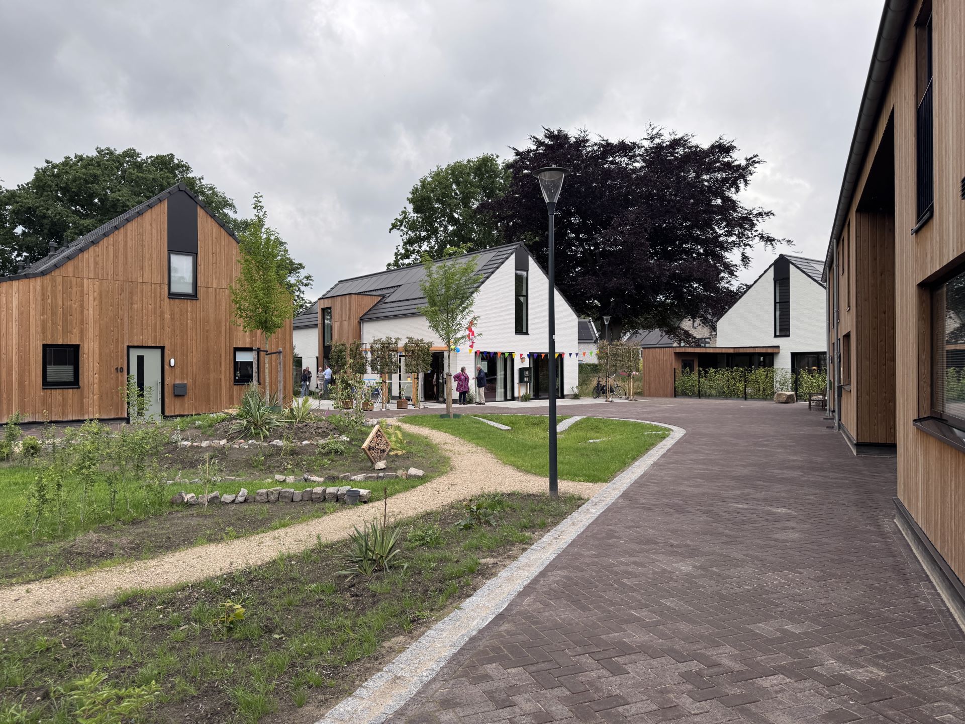 De woningen zijn energieneutraal, maken gebruik van bodemwarmte en pv-panelen en zijn duurzaam gebouwd. Een woning is uitgevoerd met een CLT bouwconstructie. Het ensemble is een spel van grondgebonden woningen met eenvoudige hoofdvormen. Ieder gebouw vormt een gezicht aan de omliggende straten of aan de groene gebieden zoals het voedselbos of het erf. De vele doorkijkjes bieden zicht op een variatie van materiaal zoals hout en gekeimde gevels voor het nodige onderscheid. Het driehoekige brabantse boerenerf heeft een nieuw jasje gekregen.
