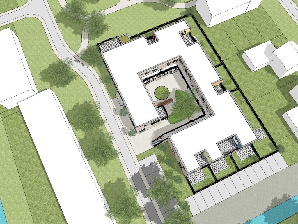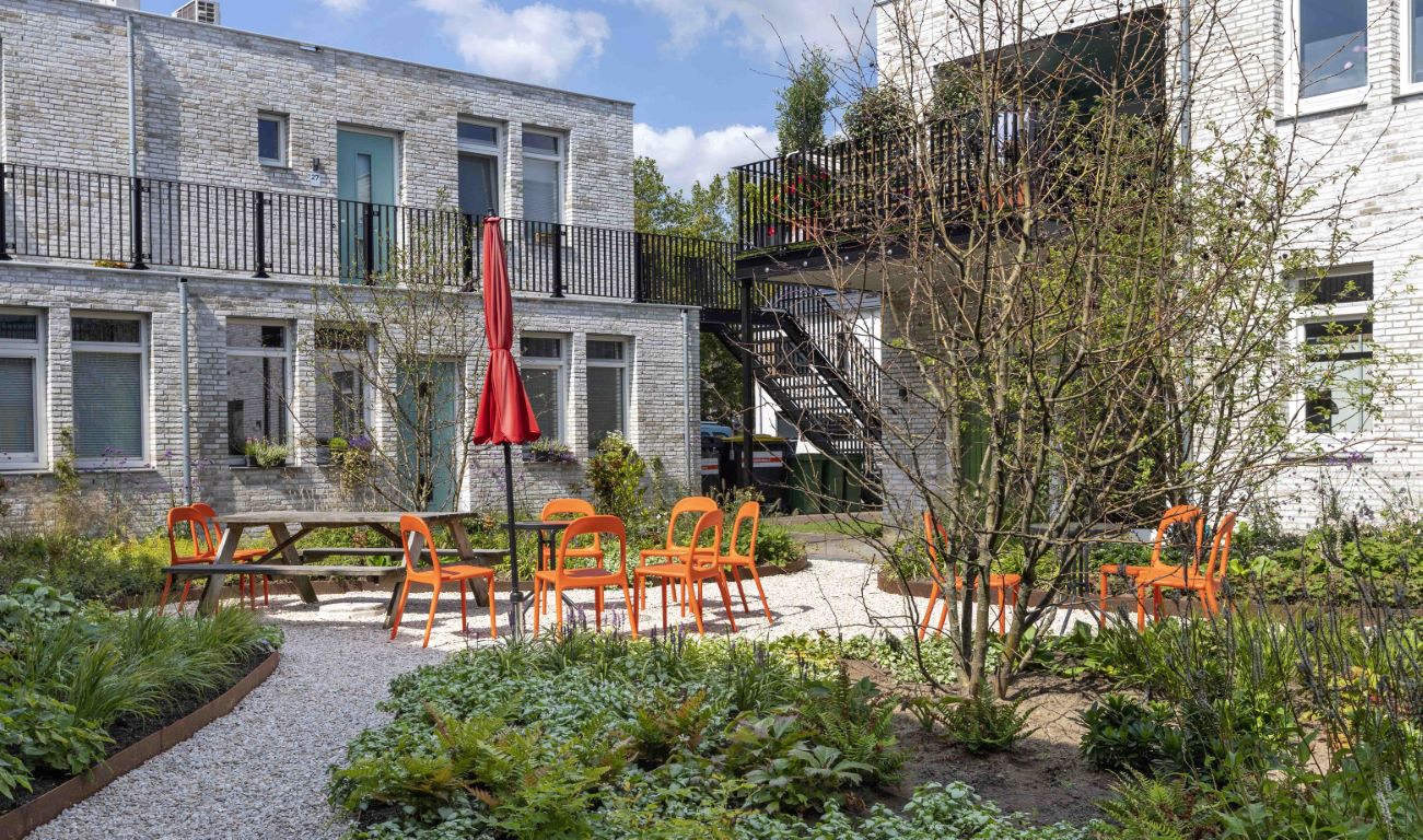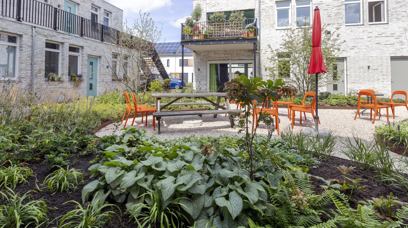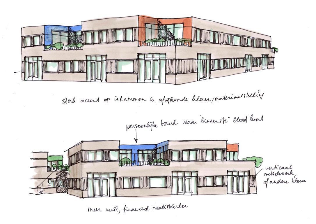 Via workshops is het architectuurbeeld gevormd: een eenvoudige hoofdvorm uit lichte baksteen met kleurrijke accenten waarmee woningen zich kunnen onderscheiden. Ook de raamopeningen zijn een afspiegeling van bewonerswensen; variatie als noten op een notenbalk in een muziekstuk. Aan de groene binnenhof liggen alle voordeuren en aan buitenzijde privé buitenruimten. Activiteit en ontmoeting versus rust en terugtrekken.