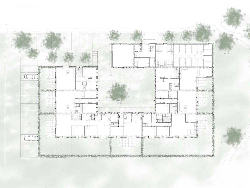 Op locatie van een voormalig sportcomplex is een nieuwe buurt gerealiseerd, “Vrij Spel”, helemaal ontwikkeld door de toekomstige bewoners zelf. Het plan bestaat uit een combinatie van (starters)rijwoningen, tweekappers en vrijstaande woningen, basis voor een meergeneratiebuurtje. Het KilimanjaroWonen plan voor een woonhof met 14 woningen in 2 bouwlagen heeft een plek gekregen aan het begin van de buurt. De ontmoetingsruimte ligt uitnodigend tussen binnentuin en straat. In de praktijk blijkt dit een gouden greep: deze ‘huiskamer’ wordt intensief gebruikt, voor boxles, vergaderingen en etentjes, maar ook voor de nieuwjaarsbijeenkomst van de buurt.