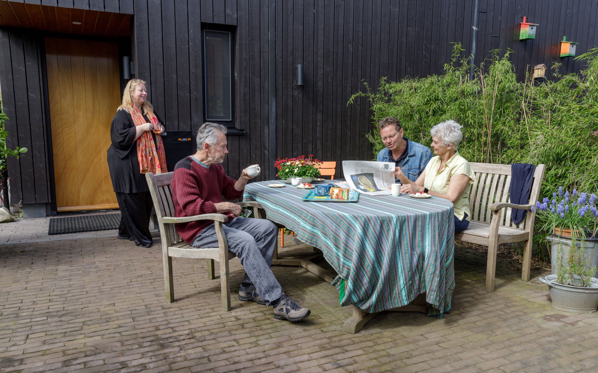 Ons cluster bestaat uit 3 woningen aan het laatste dijkje. De bewoners hebben samen besloten het dijkje te laten eindigen in een klein pleintje voor gezamenlijk gebruik. Qua programma liepen de wensen enorm uiteen, maar door te blijven streven naar samenhangende vormgeving is het gelukt de eenheid te bewaken. Nu de bewoners zijn neergestreken voelen ze hoe fijn het is om te weten dat je op elkaar kunt rekenen zonder je privacy te verliezen.